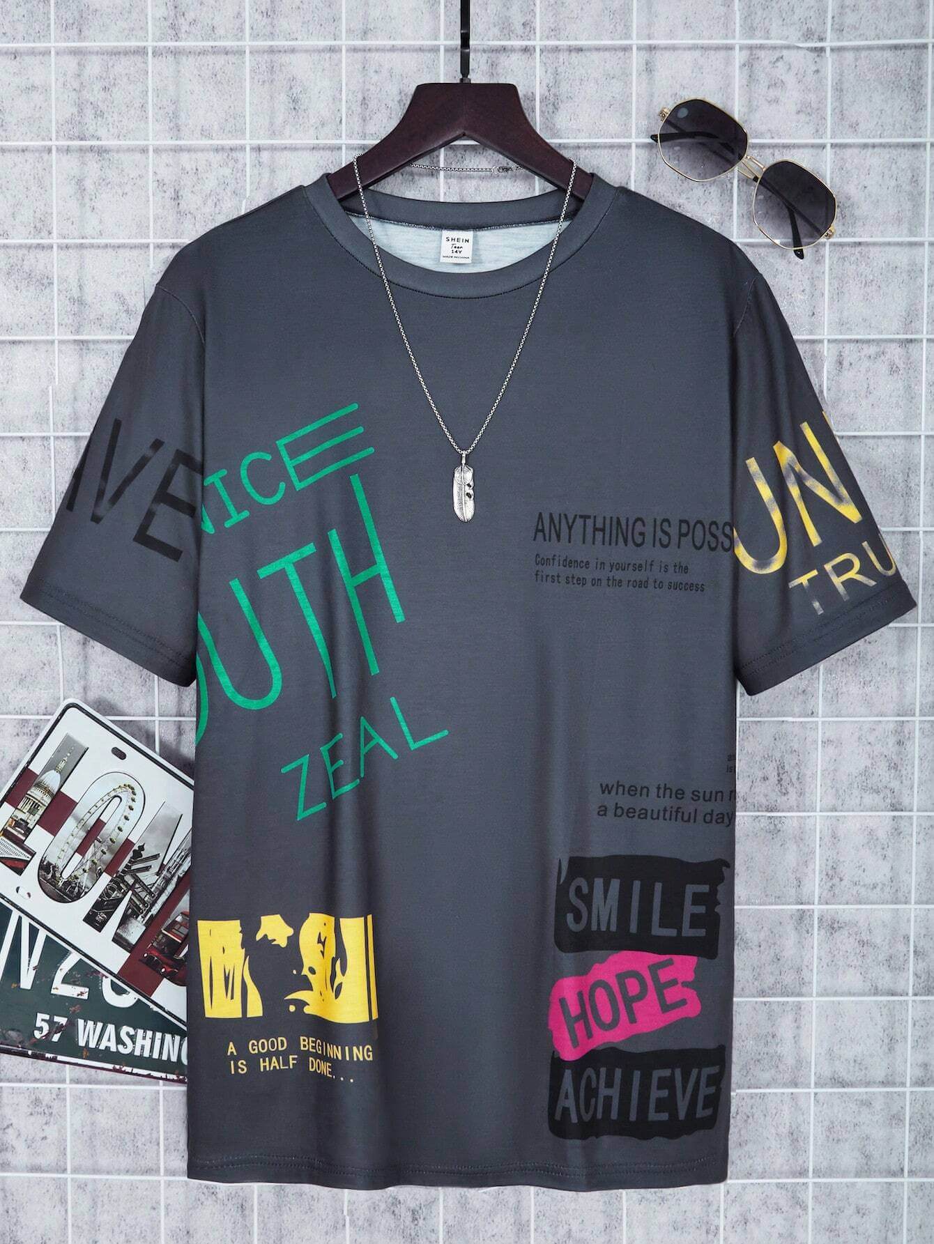 Camiseta de cuello redondo con estampado de letras estilo grafiti, ideal para adolescentes con flow callejero y actitud creativa.